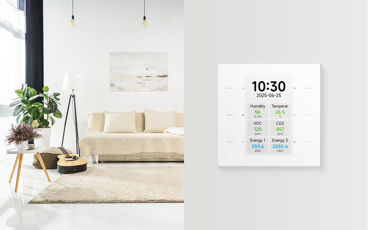 Licht, Jalousien, Raumklima, Szenen und weitere Funktionen lassen sich komfortabel steuern und intelligent automatisieren. Die integrierte Sensorik ermöglicht zusätzliche Komfort- und Effizienzfunktionen, etwa für ein optimiertes Raumklima oder automatisierte Abläufe – ganz ohne zusätzliche Geräte.